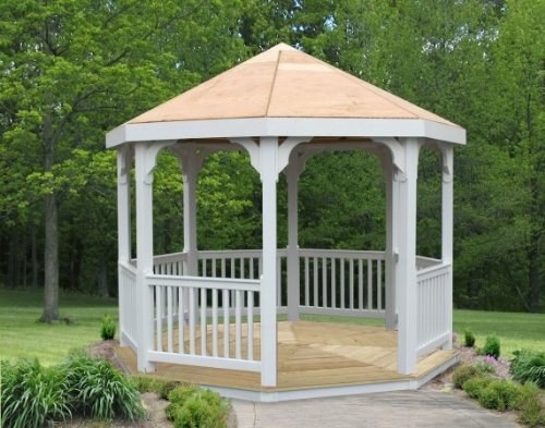Size: 117"H x 120"W x 120"D.Color: White / Natural.Made in the USA.The standard flooring is made of #1 grade treated southern yellow pine.This item ships common carrier...